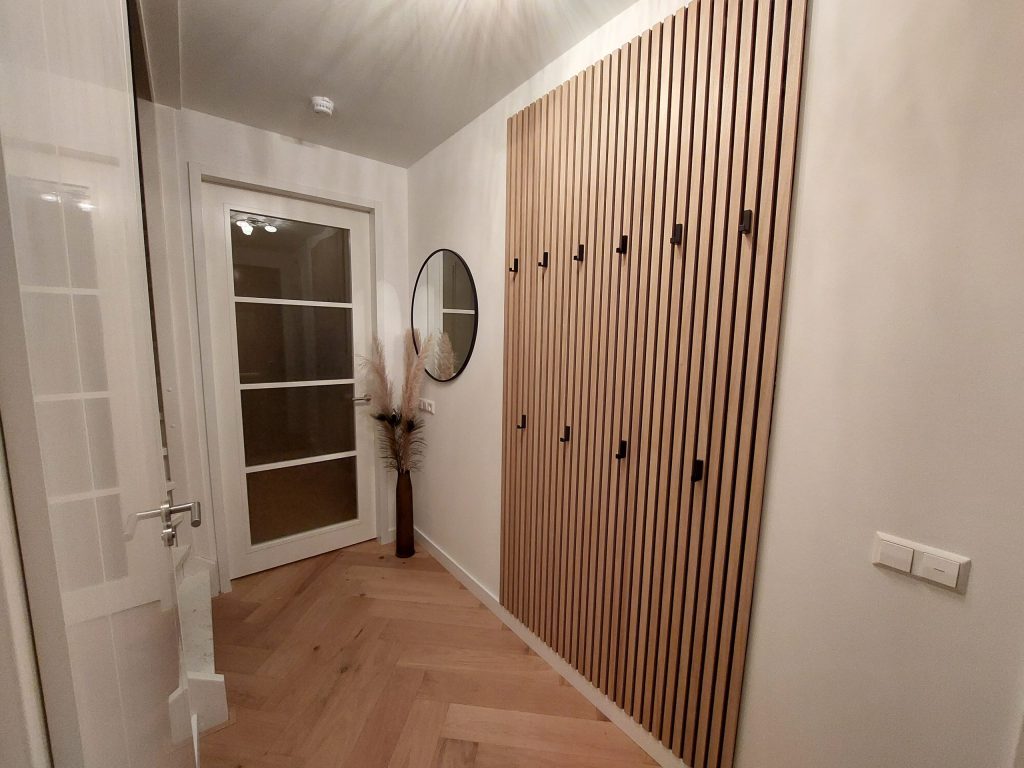 Do you have a doorway in your hallway and want to accentuate it in a stylish way? Consider creating a beautiful frame like this one. It will give the doorway an elegant and sophisticated look that complements the rest of your interior.