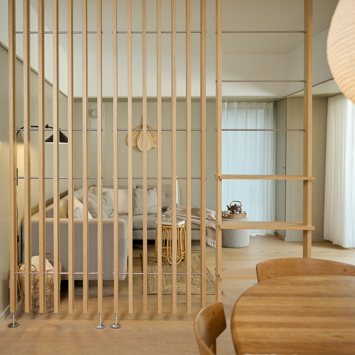 Add a balanced Japandi feel with this light, open shelf.