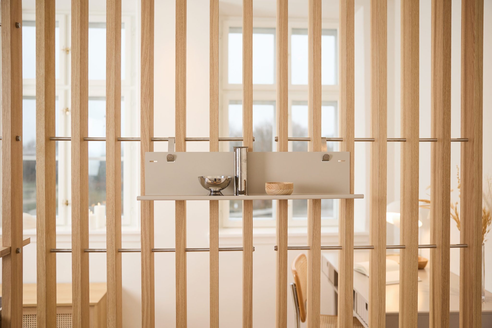 Crafted from stainless steel and high-quality powder-lacquered steel, it blends seamlessly into the Embrace structure and keeps everything feeling open, calm, and considered.