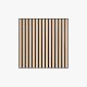 The slats are mounted on a base of acoustic felt, which is crafted from recycled materials and measures 9 mm in thickness. In total, the panel has a thickness of 22 mm, including both the slats and the felt.